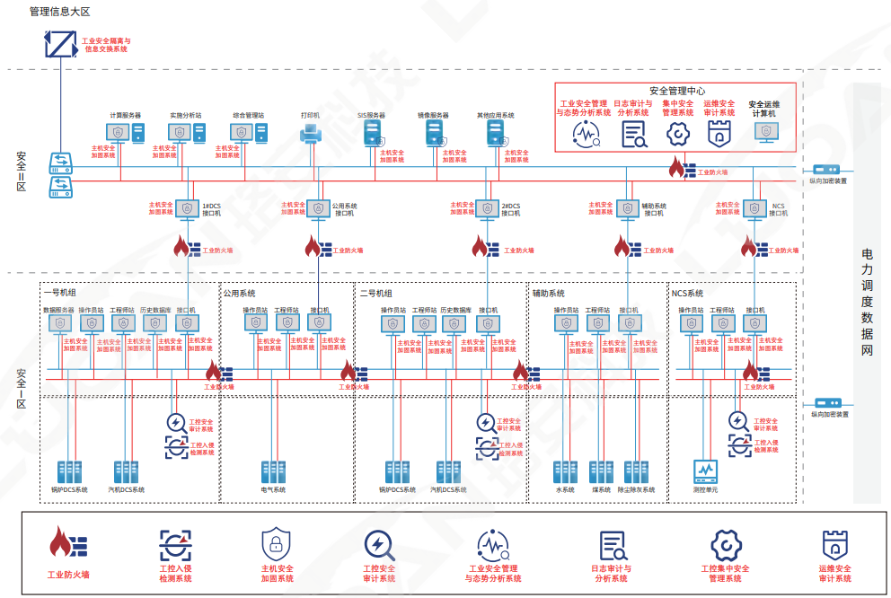 本方案主要是針對某火力發(fā)電廠的DCS系統(tǒng)、SIS系統(tǒng)等工控系統(tǒng)安全防護建設。