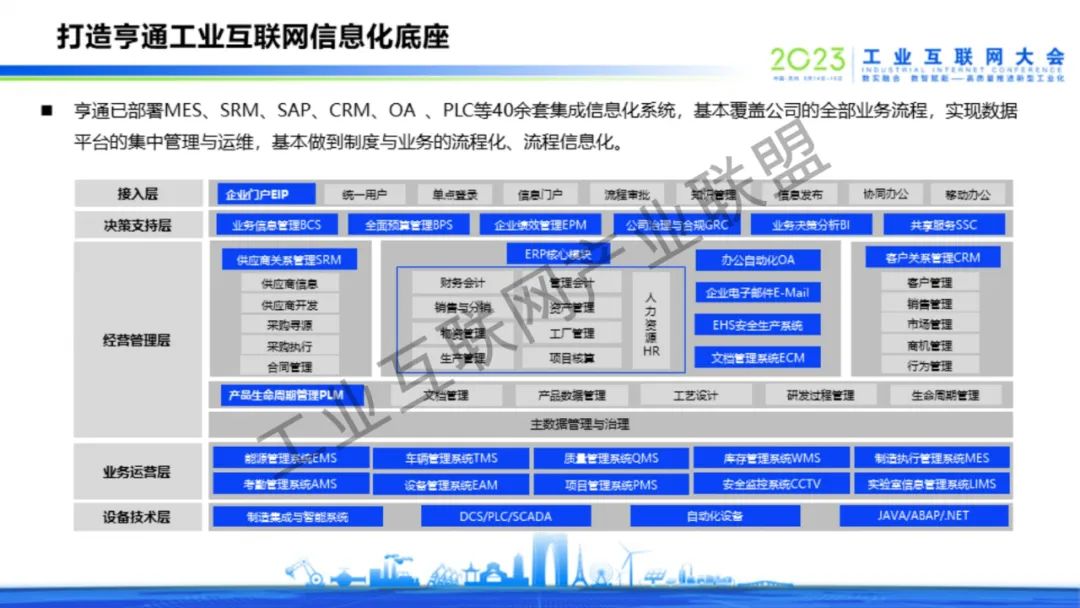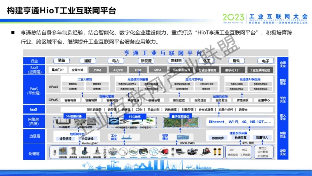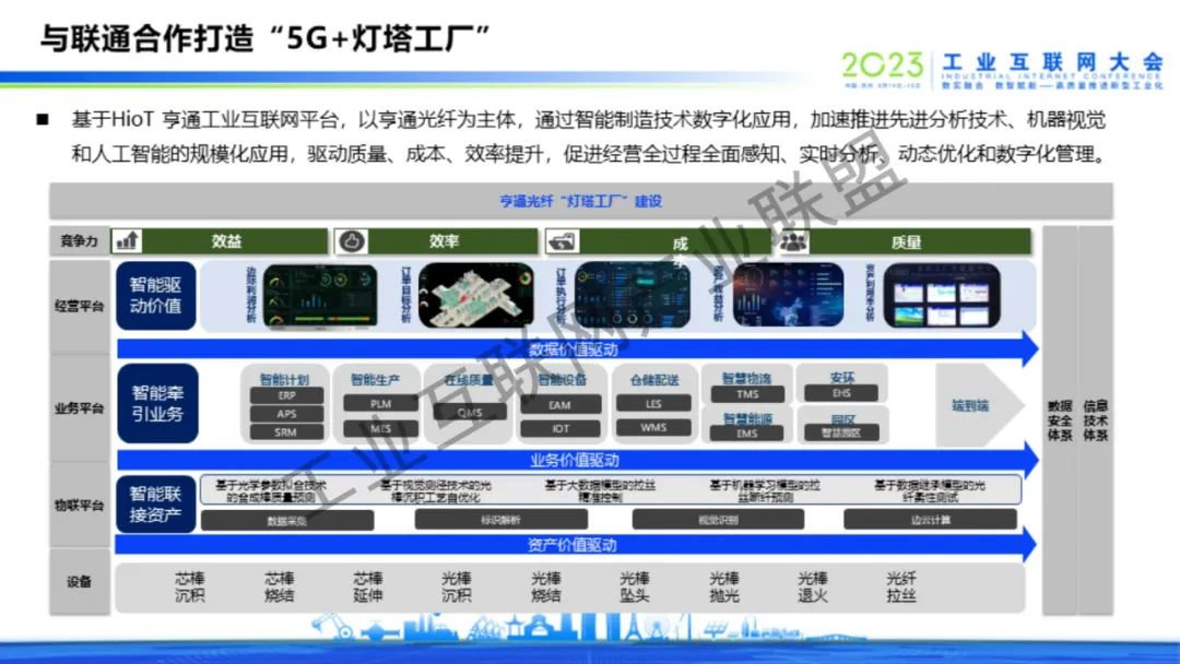 6月16日上午,亨通集團執行總裁錢建林以“全面擁抱工業互聯網,激發企業發展新動能”為題,在2023工業互聯網大會工業互聯網趨勢洞察與路徑探索高峰對話上作主題演講。結合亨通在工業互聯網賦能企業數字化、信息化、智能化發展的實踐經驗和成果案例,依托5G+工業互聯網的融合應用、縱深發展優勢,在內率先實現智能化改造數字化升級,打造了一批批智能制造示范工廠、工業互聯網平臺,為企業高質量發展提供了新模式,增添了新動能;在外憑借工業互聯網的先進技術優勢,重點打造亨通HioT工業互聯網平臺,以產業數字化迭代升級賦能行業高質量發展。錢建林表示,亨通HioT工業互聯網平臺以“江蘇亨通數字智能科技有限公司”(簡稱:亨通數科)為載體,從工業互聯網賦能智能制造、綠色生產、智慧產業園區、中小企業數字化水平等領域,聚焦行業痛點,為13個行業提供67項最佳實踐解決方案,將亨通的經驗和成果分享給各行業、各企業。未來,亨通將加快構建更高水平、更廣范圍、更深層次的制造業數字化發展格局,助力形成具有全球競爭力的“5G+工業互聯網”產業集群,推動加快建設制造強國、網絡強國,在中國式現代化新實踐中再作新的更大貢獻。