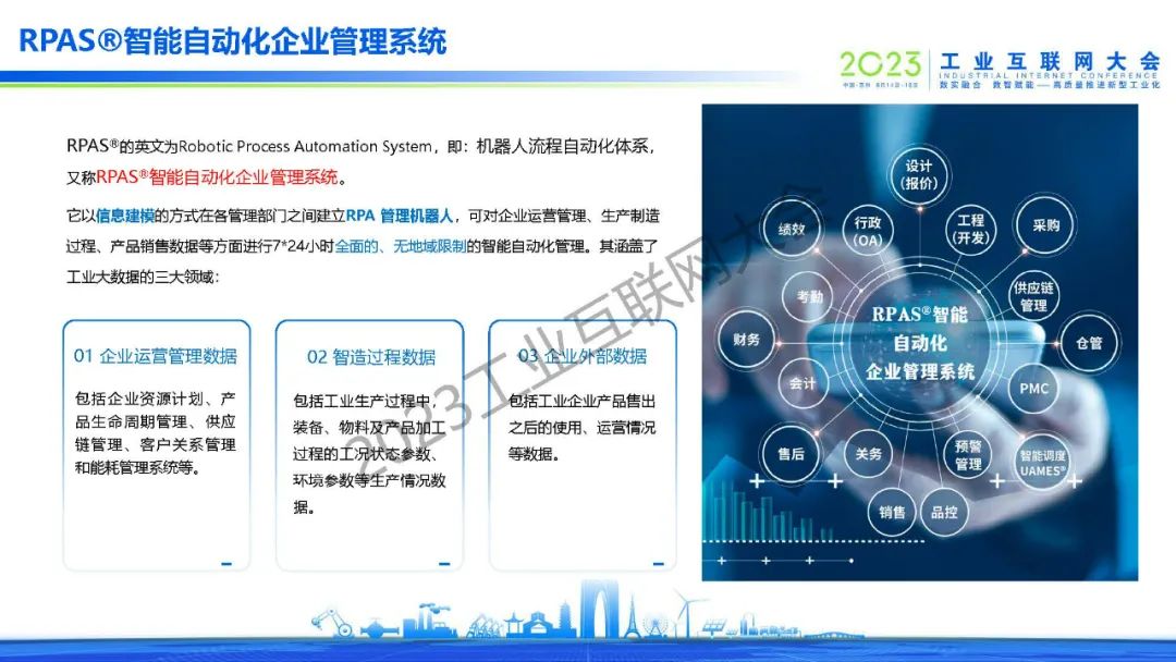 “RPAS是智能自動化企業(yè)管理系統(tǒng),它以信息建模的方式在各個管理環(huán)節(jié)之間建立RPA機器人,可對企業(yè)運營管理、生產(chǎn)制造過程、產(chǎn)品銷售數(shù)據(jù)等各個方面進行7*24小時全面的、無地域限制的智能自動化監(jiān)控和管理,同時可以使整個工廠當中再沒有任何的數(shù)據(jù)孤島?!?/p>