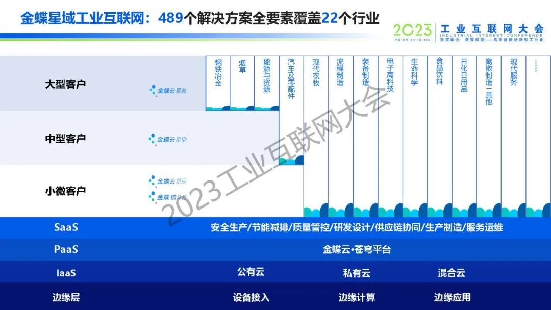 劉仲文表示工業互聯網推動領航企業向全要素、全流程、全生態數字化發展,加速中小企業產業集群模式轉變與可持續發展。金蝶星域工業互聯網平臺是以金蝶云蒼穹PaaS平臺為底座,為二十余行業的大型企業、中型企業和小微企業提供9大領域全流程數字化服務,賦能中小企業產融協同,實現數字化轉型與升級。