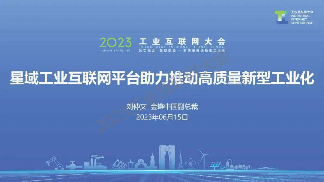 6月15日,在2023工業互聯網大會“工業互聯網最佳實踐高端論壇”上,金蝶中國執行副總裁劉仲文發表了《工業互聯網進入了產業數治化新階段》的主題演講。