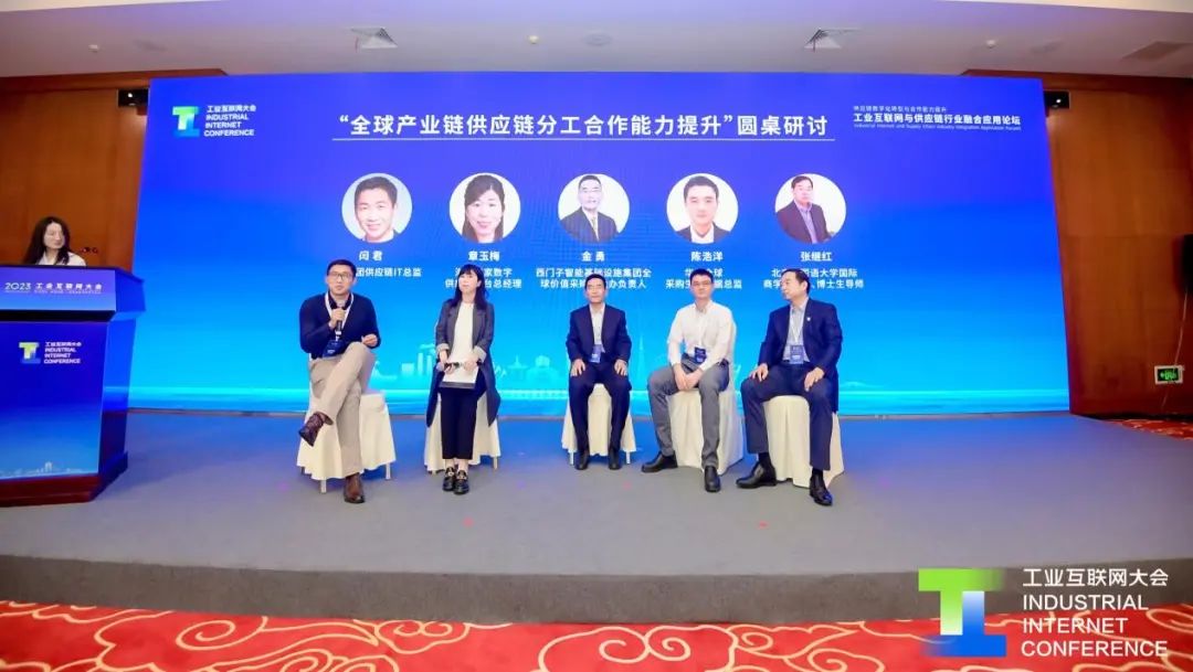 在2023工業互聯網大會“工業互聯網與供應鏈行業融合應用”論壇上,聯想集團供應鏈IT總監閆君主持“全球產業鏈供應鏈分工合作能力提升”圓桌研討,和四位嘉賓進行精彩互動討論。