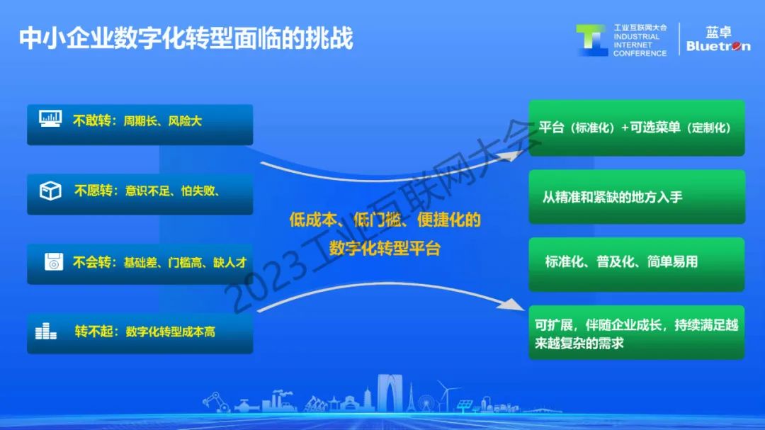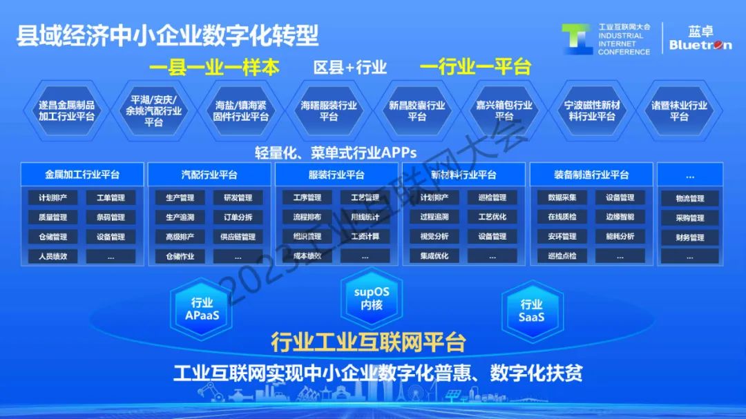 基于這種輕量級、菜單式、云上SaaS化的訂閱式應(yīng)用,降低中小企業(yè)使用數(shù)字化基于工業(yè)互聯(lián)網(wǎng)的方式。現(xiàn)在正在長三角、珠三角推進(jìn)一縣一業(yè)一樣本,一行業(yè)一平臺的區(qū)域經(jīng)濟(jì)中小企業(yè)數(shù)字化轉(zhuǎn)型方式,實(shí)現(xiàn)中小企業(yè)的數(shù)字化普惠。