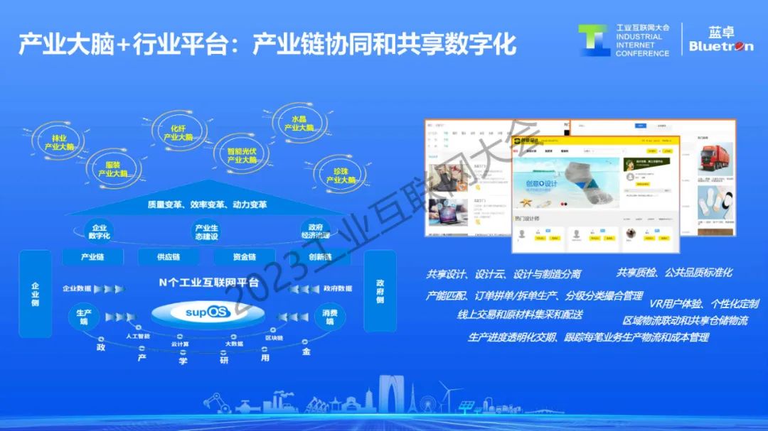 另一方面,隨著國際產(chǎn)業(yè)形勢的變化,來自于產(chǎn)業(yè)鏈、供應(yīng)鏈協(xié)同和共享的數(shù)字化需求越來越強(qiáng)烈。依托工業(yè)操作系統(tǒng)實(shí)現(xiàn)強(qiáng)鏈補(bǔ)鏈,也是藍(lán)卓的重點(diǎn)方向之一。目前,藍(lán)卓重點(diǎn)參與了包括化纖產(chǎn)業(yè)大腦、光伏產(chǎn)業(yè)大腦、服裝產(chǎn)業(yè)大腦、襪業(yè)產(chǎn)業(yè)大腦、水晶產(chǎn)業(yè)大腦的建設(shè)。通過產(chǎn)業(yè)大腦操作系統(tǒng)的形式拉動整個產(chǎn)業(yè)鏈的資源,探索包括共享設(shè)計、共享質(zhì)檢、產(chǎn)能匹配、訂單撮合、供應(yīng)鏈協(xié)同在內(nèi)的各種創(chuàng)新模式。
