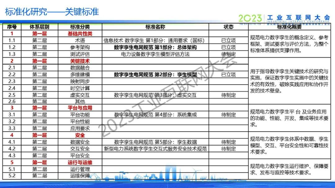 李哲指出,數字孿生模型構建實現數字孿生體的的定義、組裝、構建的全過程服務,實現對新型電力系統中設備實體、單元及系統功能特性的數字化、可視化表達。目前,電力數字孿生應用實踐過程中,數字孿生總體架構、關鍵服務能力、技術路線、實施要求等方面尚未達成統一規范,亟需構建電力數字孿生技術標準體系,建立電力數字孿生標準化組織,并積極開展電力數字孿生標準需求分析、標準體系研究、關鍵標準規劃和研制工作,是推動數字孿生與新型電力系統深入融合發展、構建電力數字孿生領域產學研用技術創新體系和產業生態、引領電力數字孿生國際標準規劃布局的必然要求。