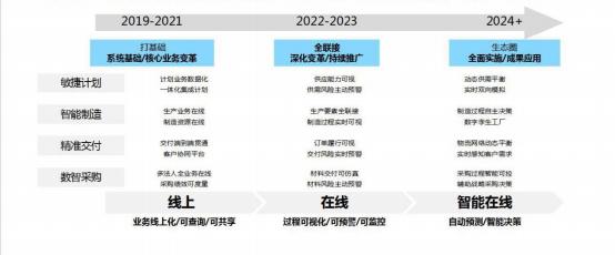 數字化轉型中 ,最困擾我們的就是路徑是什么 ,我們通過大量的研討和思考 ,對比 業界最優方案后 ,思考出針對供應鏈的 ROADMAP ,在這個路徑中 ,我們關注每個模 塊都有路徑 ,數字化轉型過程可以不同步 ,但目標是一致的。