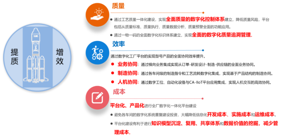 以航天裝備數(shù)字化為標(biāo)桿,為高端裝備制造企業(yè)打造工具化、低成本、一站式的數(shù)字化升級產(chǎn)品生態(tài);打造裝備制造產(chǎn)業(yè)數(shù)據(jù)獲取、數(shù)據(jù)匯聚、數(shù)據(jù)賦能的工業(yè)大數(shù)據(jù)應(yīng)用創(chuàng)新平臺;形成裝備制造業(yè)智能化升級、服務(wù)化轉(zhuǎn)型、創(chuàng)新性設(shè)計(jì)的新一代信息技術(shù)創(chuàng)新應(yīng)用共享服務(wù)平臺,助力我國裝備制造業(yè)技術(shù)融合與產(chǎn)業(yè)升級。